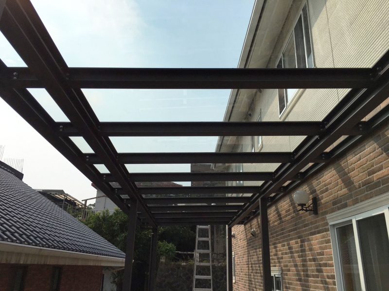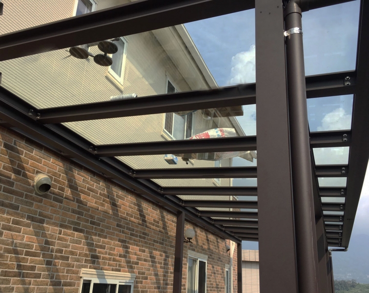 材料:H型鋁鋼構10cm*10cm 含集水槽及水管施工 立柱為10cm*10cm方管