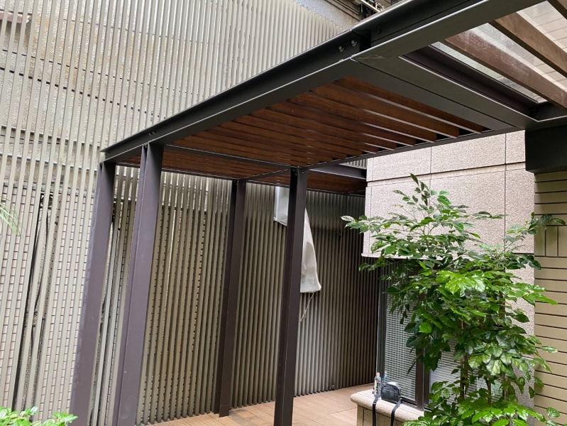 銜接原有12X12骨架,並且配合原有木頭以特殊木紋色烤漆處理