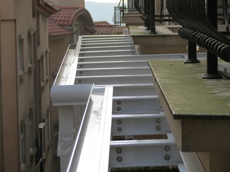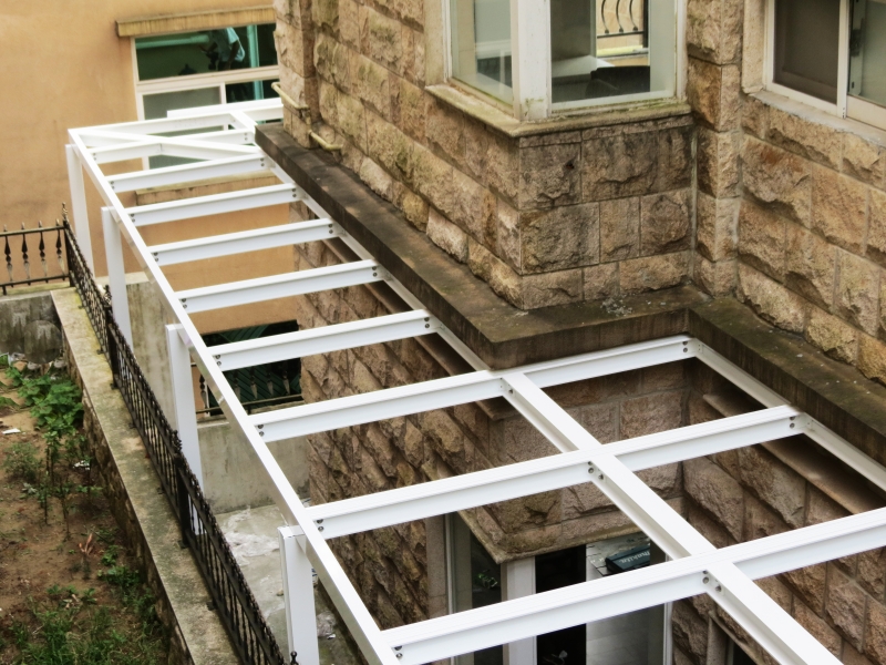 材料: H型(10cm*10cm)鋁鋼構(含玻璃安全壓板) 顏色:純白色 含水槽施工