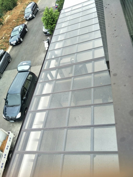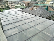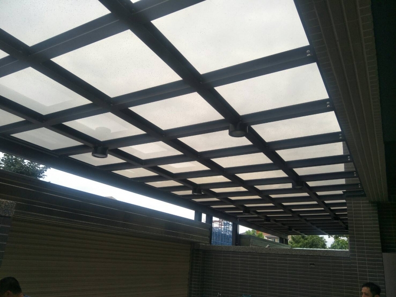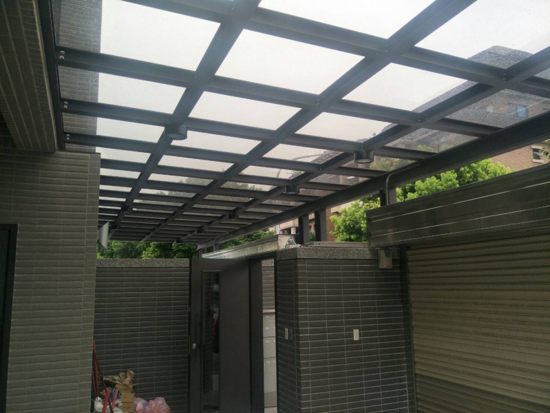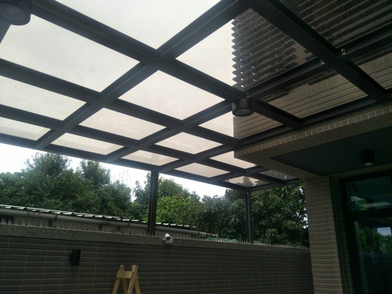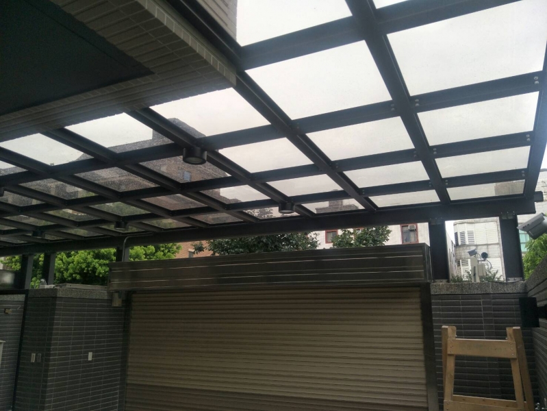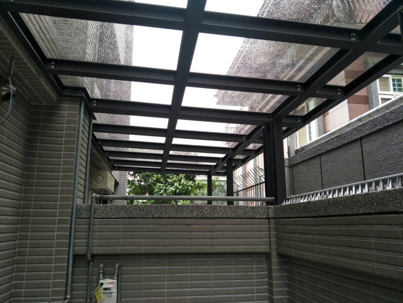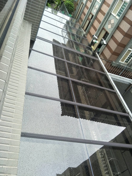材料:H型鋁鋼構10cm x 10cm(含玻璃安全壓板,集水槽及水管施工)