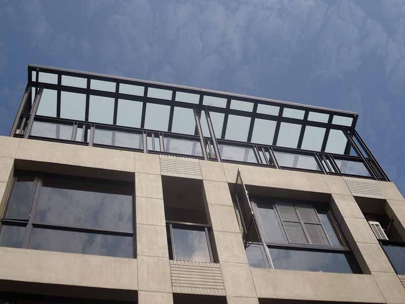 材料:H型鋁鋼構(含玻璃安全壓板) 玻璃:5mm光+5mm光雙強膠合白膜