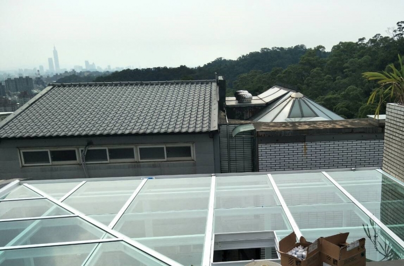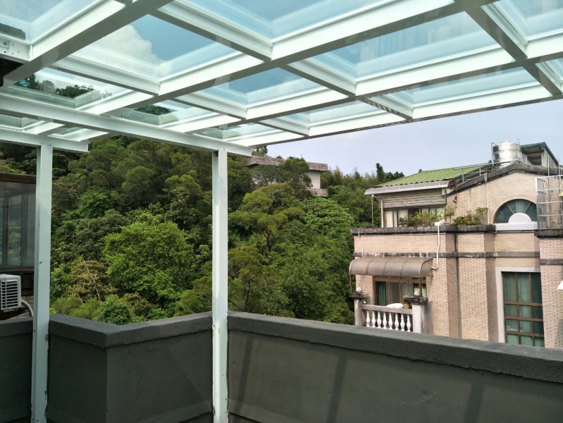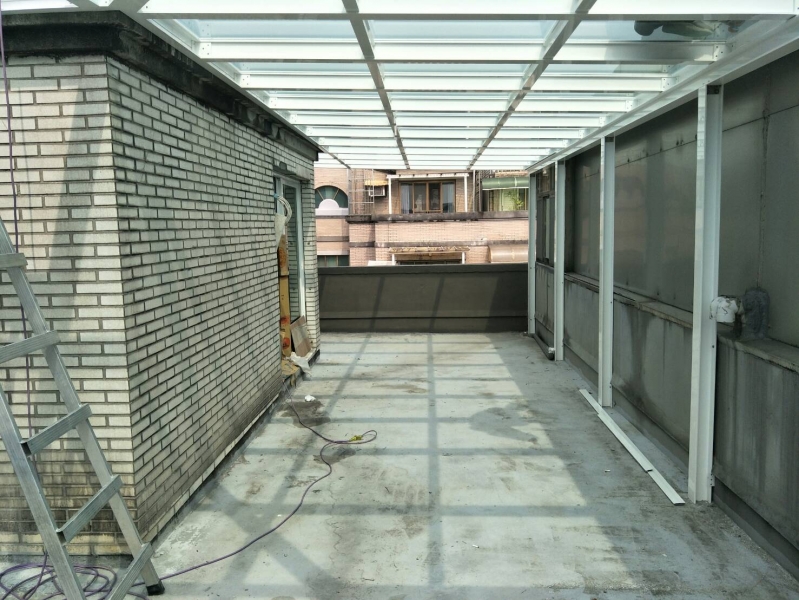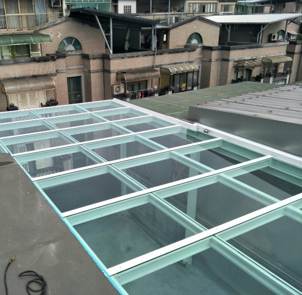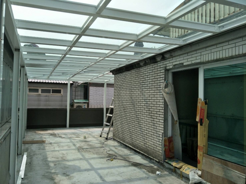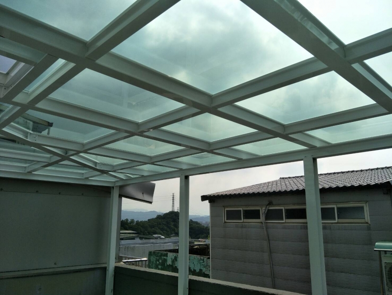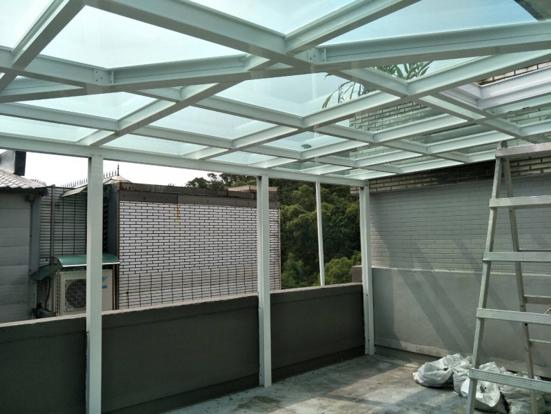 材料:和宜企業有限公司新型採光罩材料,搭梁立柱H型鋁鋼構10cm*10cm